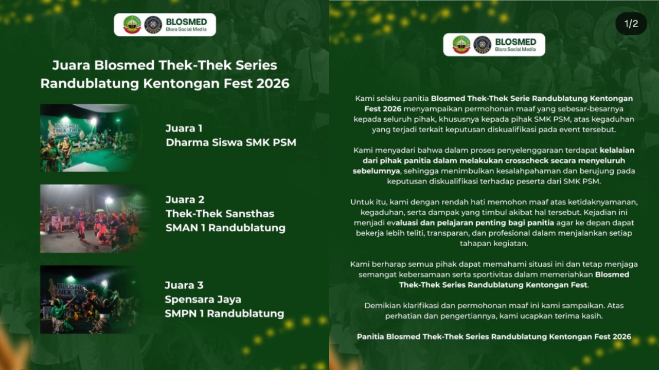 Blosmed Minta Maaf Usai Diprotes, Peserta Lomba Thek Thek Diskualifikasi Mendadak Jadi Juara 1